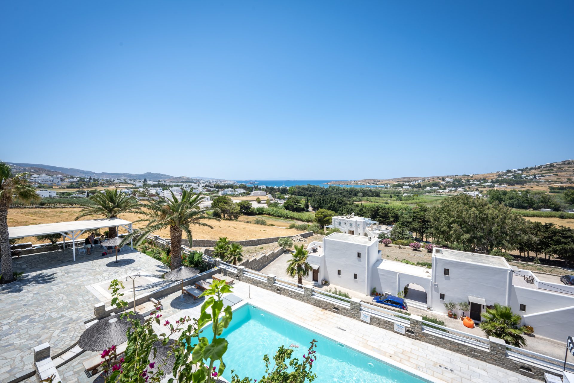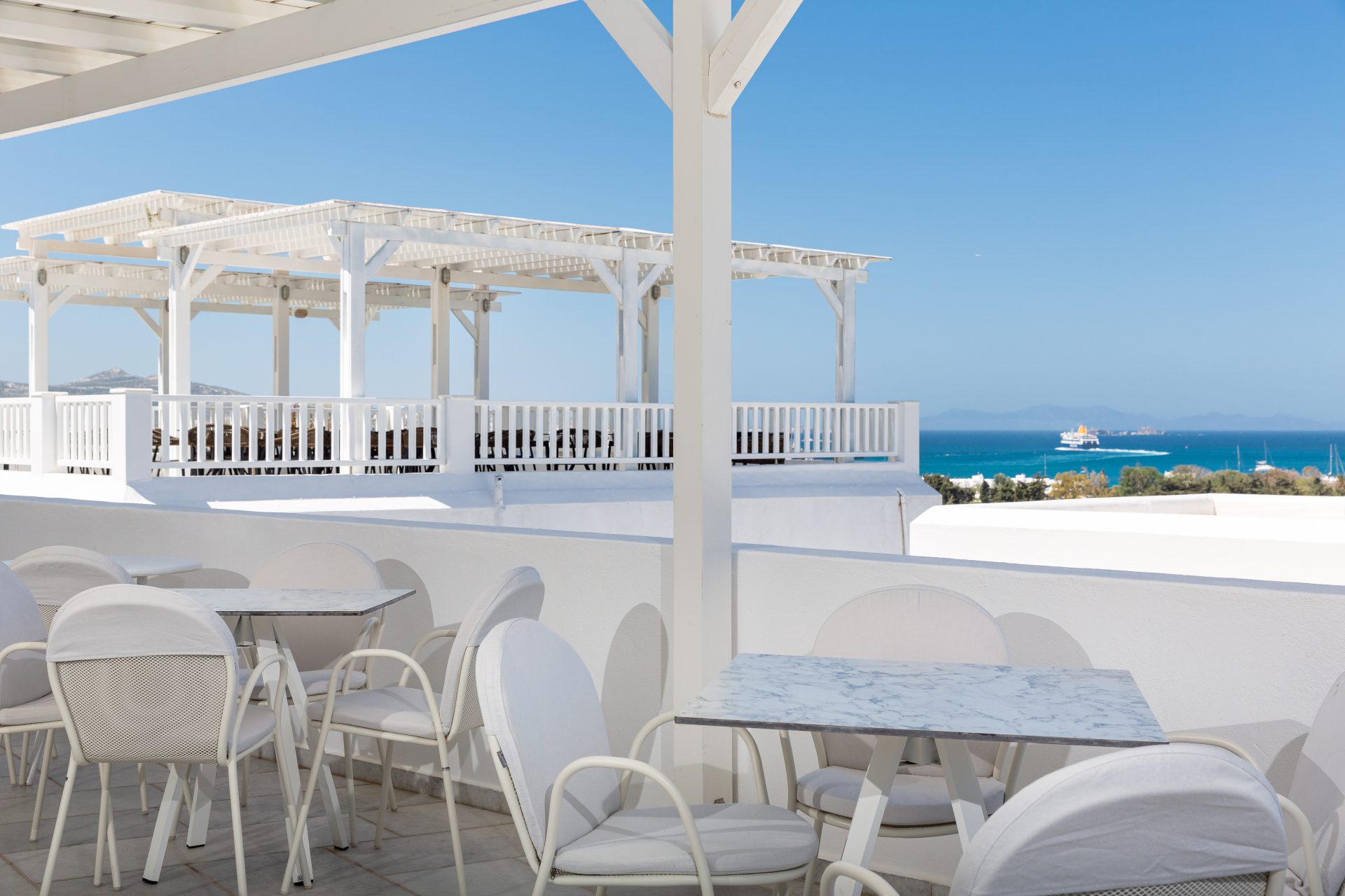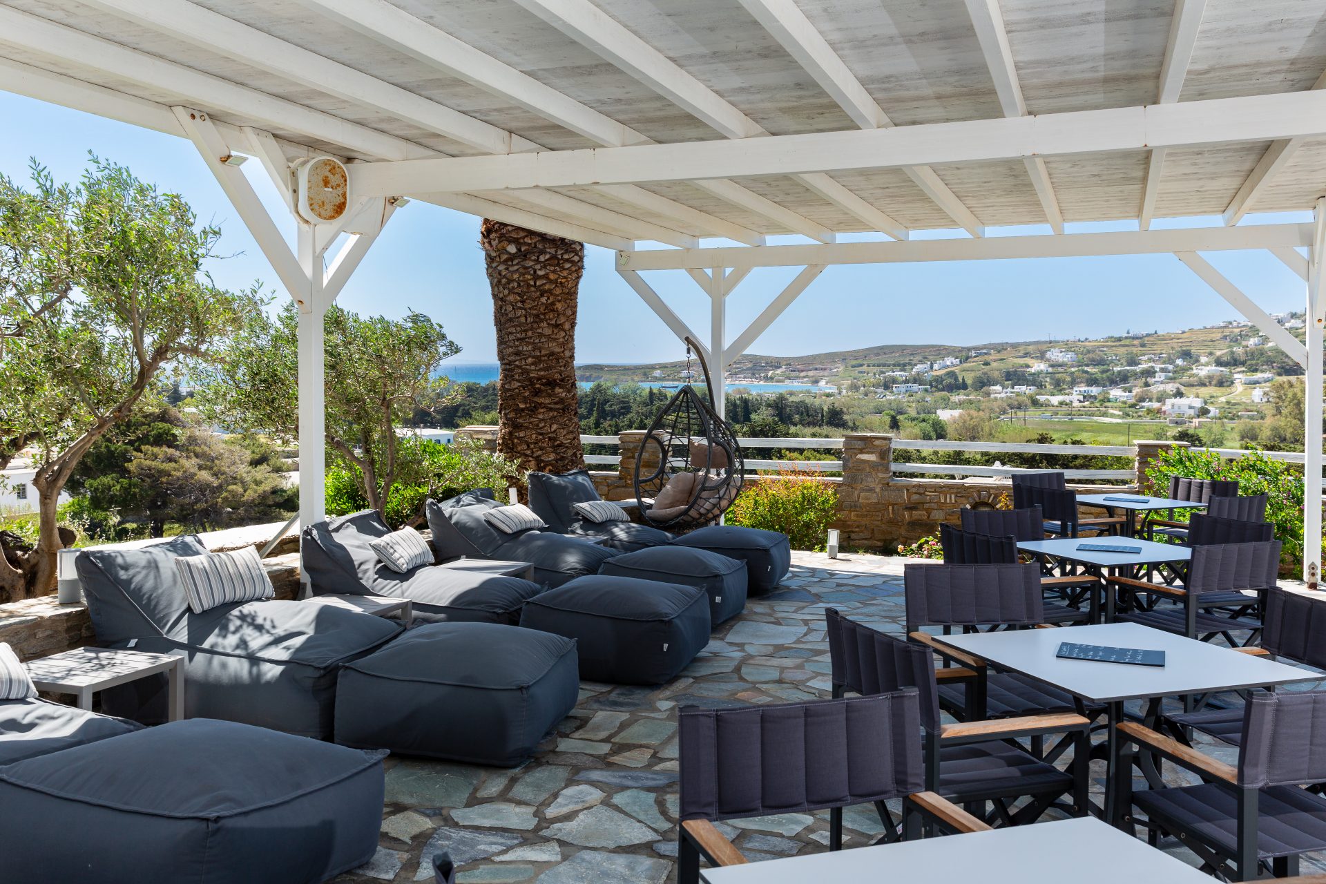 The terrace and the pool of Pyrgaki hotel provide unparalleled panoramic view of the Aegean sea and together with the tastefully designed facilities and services guarantee a memorable stay to all the guests.