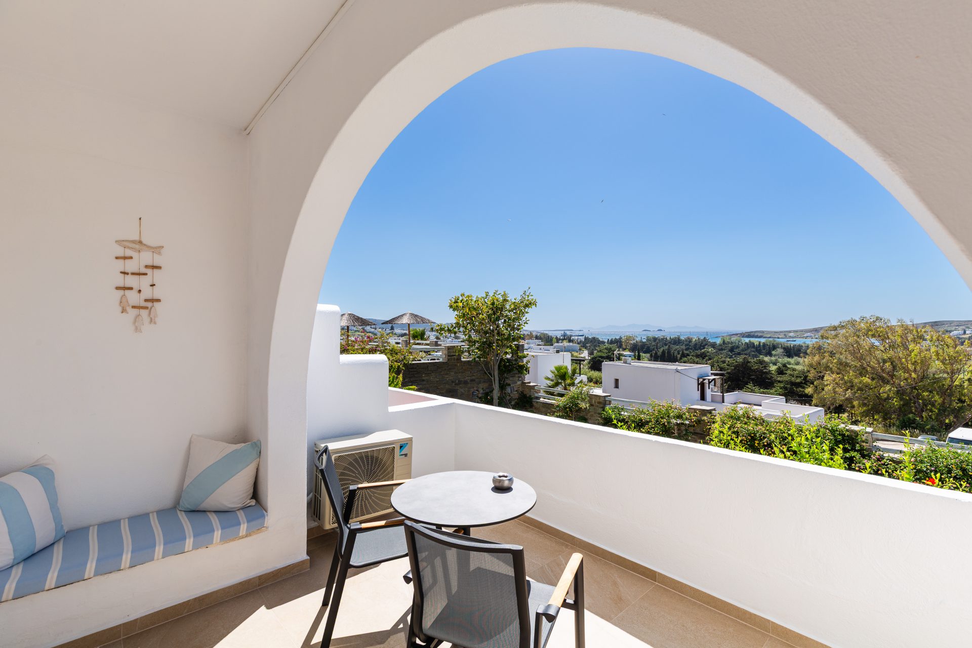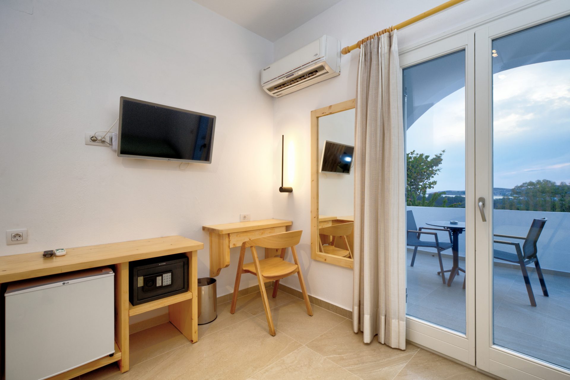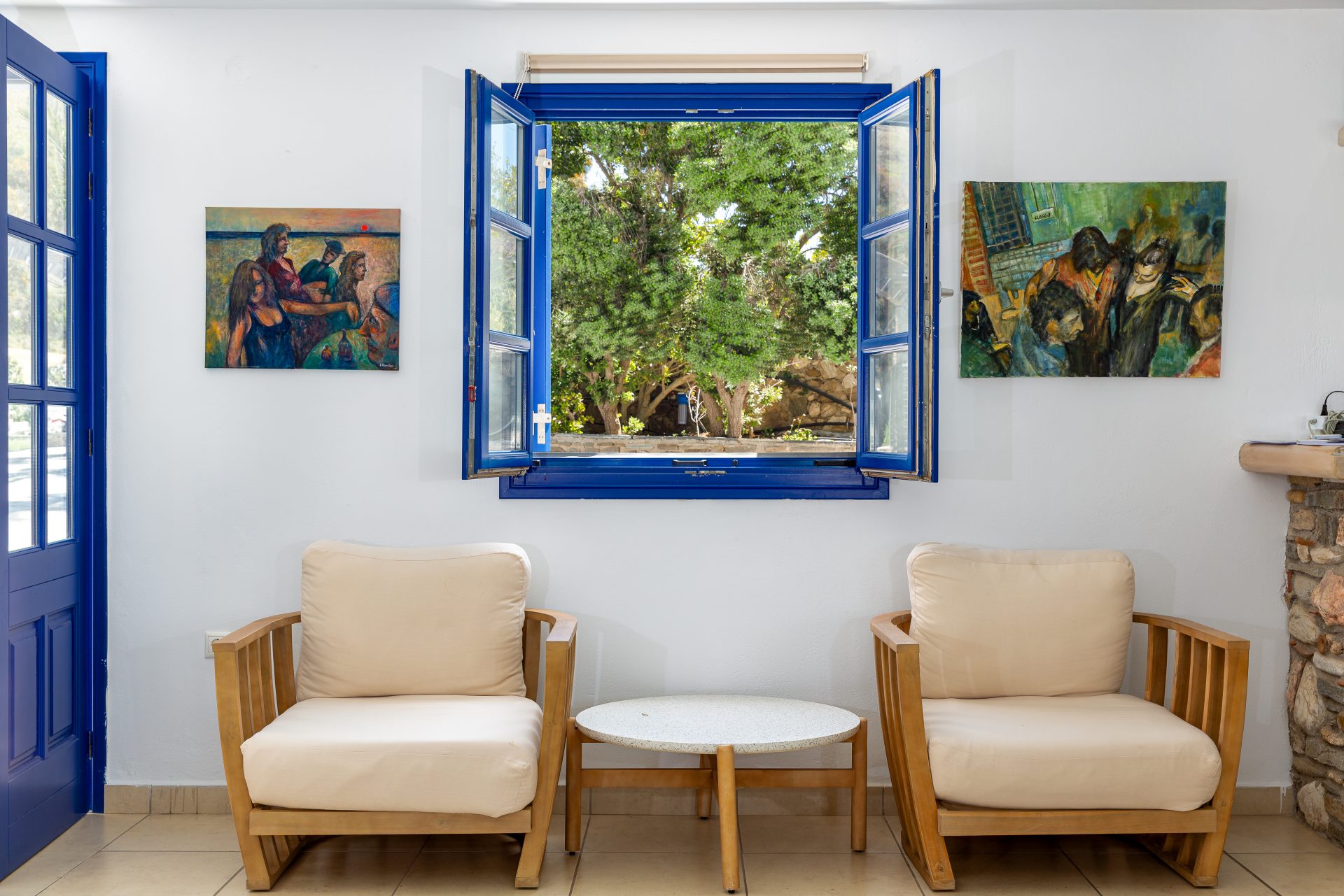 The terrace and the pool of Pyrgaki hotel provide unparalleled panoramic view of the Aegean sea and together with the tastefully designed facilities and services guarantee a memorable stay to all the guests.